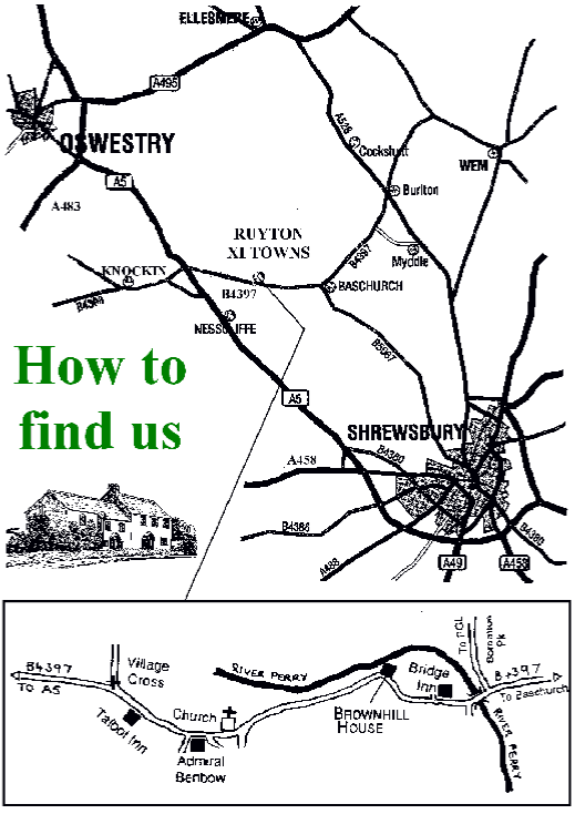 If using public transport, train or coach to Shrewsbury, bus or taxi to Ruyton XI Towns (14 km).